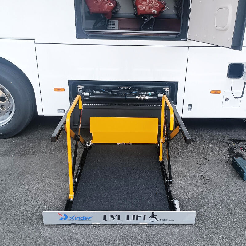 The UVL-700II/1300II/1600II-H series wheelchair lifts are accessibility devices specifically designed for vehicle luggage compartments. The entire series does not occupy any interior space or obstruct the driver's or passengers' view. Its innovative design incorporates a load-bearing frame above the mechanism, allowing the luggage compartment to still be used for luggage storage after installation. The device uses electro-hydraulic operation and can safely lift up to 350kg. The platform features a non-slip surface and front and rear protective flaps, facilitating smooth wheelchair entry and exit and ensuring safety during the lifting process. Lifting is controlled via a handheld switch, and the platform descends quietly using gravity for energy efficiency. The maximum lifting height is up to 1800mm, and it comes standard with a manual emergency device that can be operated by two people in case of power failure.
