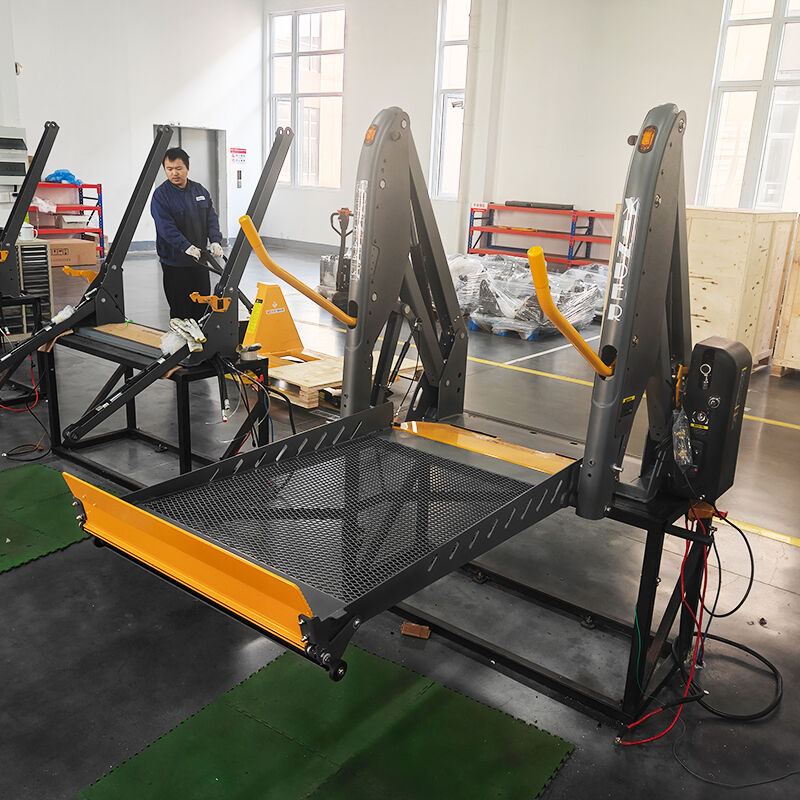 The product uses a fully automatic hydraulic drive, smoothly completing the platform's raising, lowering, and tilting movements. Compared to traditional mechanical or electric drive systems, the fully automatic hydraulic drive offers distinct advantages in stability and load-bearing performance. During operation, it achieves smooth and steady movements, effectively minimizing jolts, shakes, or sudden pauses that may cause discomfort or safety risks to wheelchair users—especially for the elderly, individuals with limited physical stability, or those using heavy electric wheelchairs. The automated operation mode eliminates the need for manual lifting or pushing, greatly reducing the workload of vehicle drivers or caregivers and enabling wheelchair users to complete the boarding and alighting process more independently. Additionally, hydraulic drive systems are known for their durability and resistance to wear, making the lift well-suited for high-frequency use scenarios such as daily commercial transportation and school bus commutes, ensuring long-term reliable operation with minimal maintenance.
